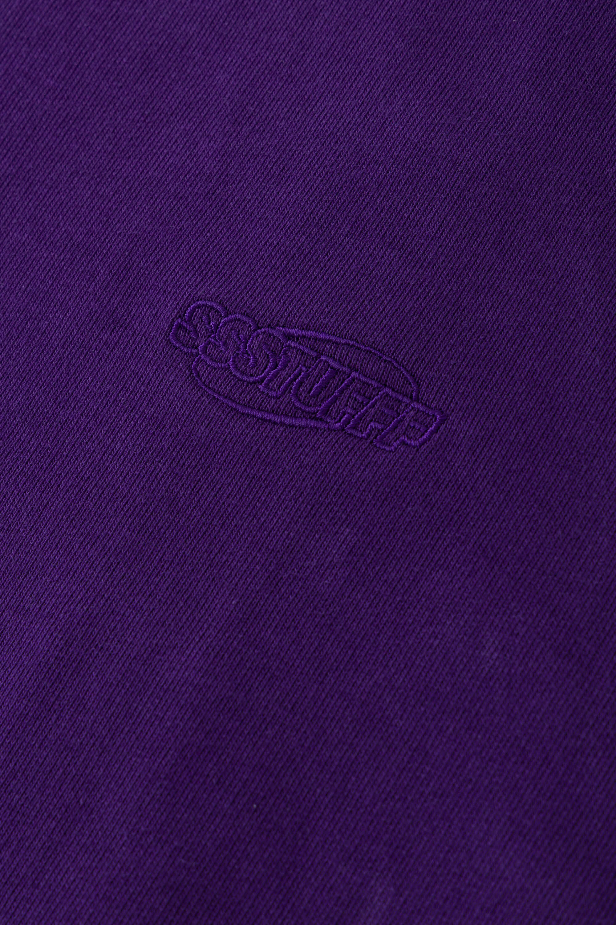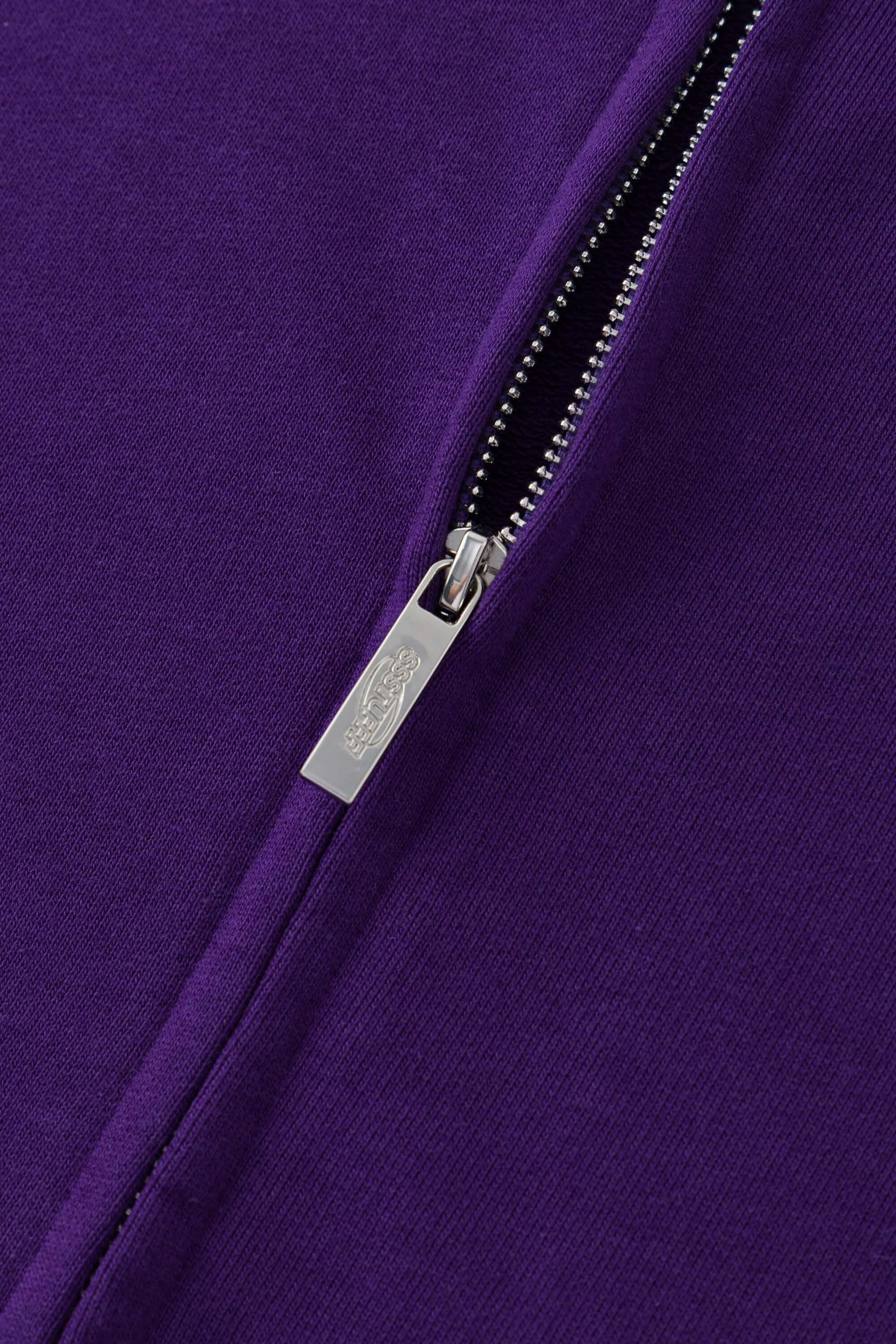 Purple zip-up hoodie with embroidered mini logo on the back