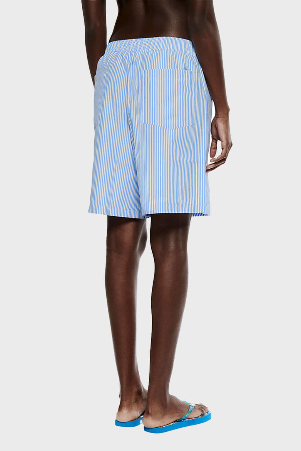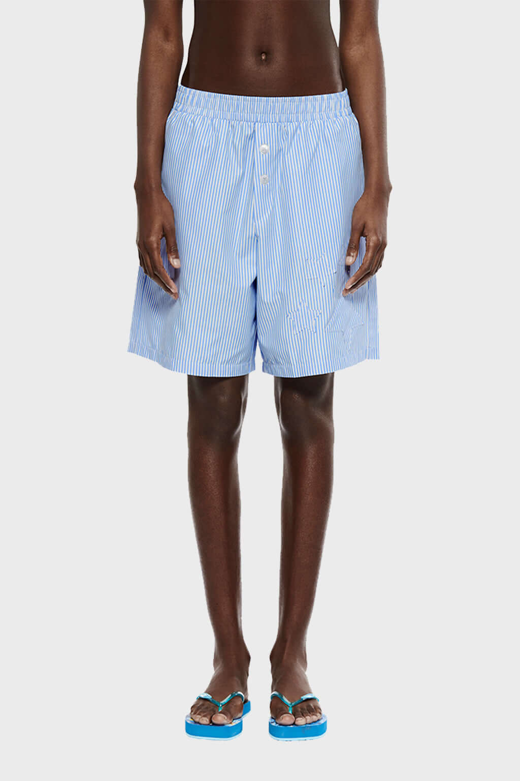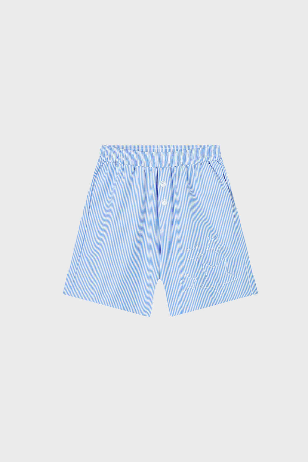 -Fake button patch, blue bengal stripes with oversized fit