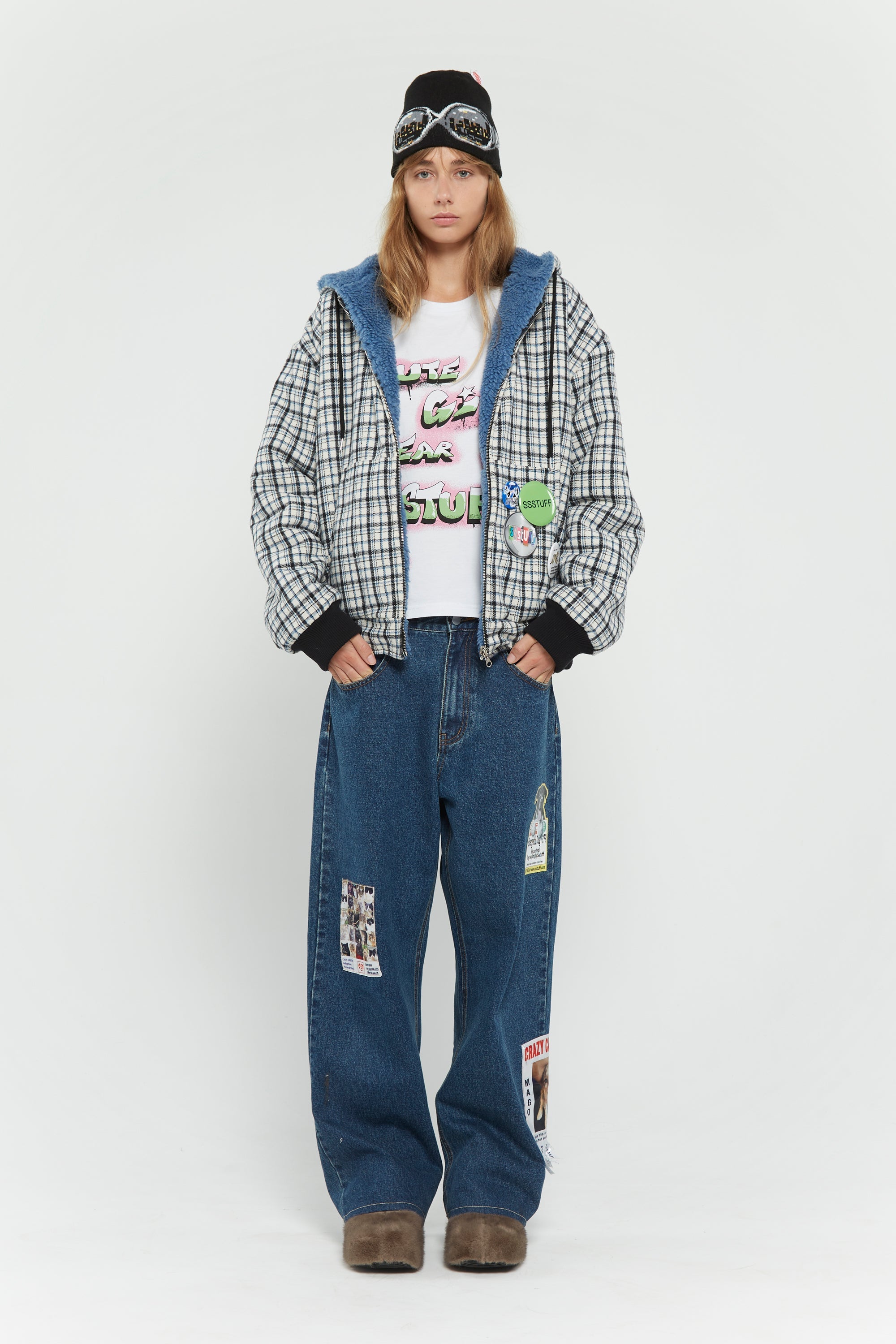 -Embroidered and printed patches throughout front and back.