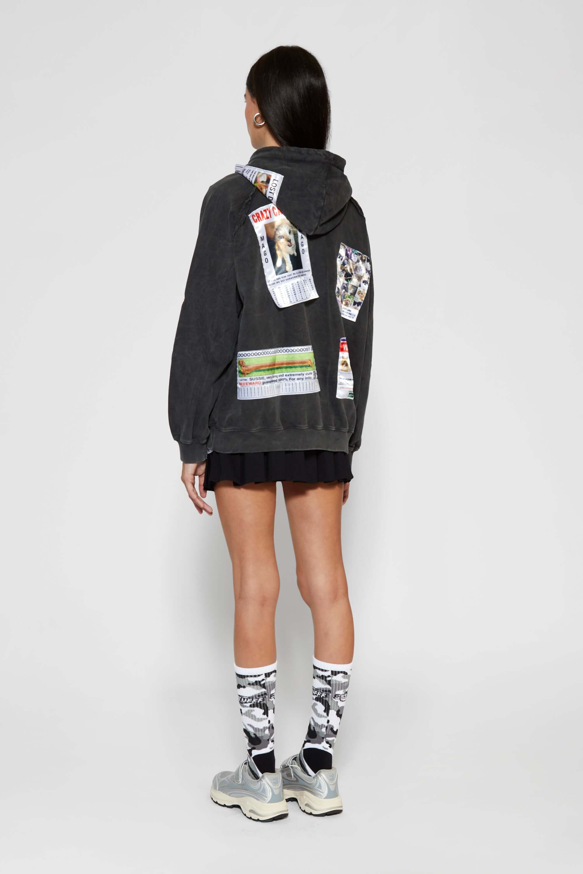 -Female model is 1.75 m (5′9″) and 48 kg (106 lbs), wears size S.