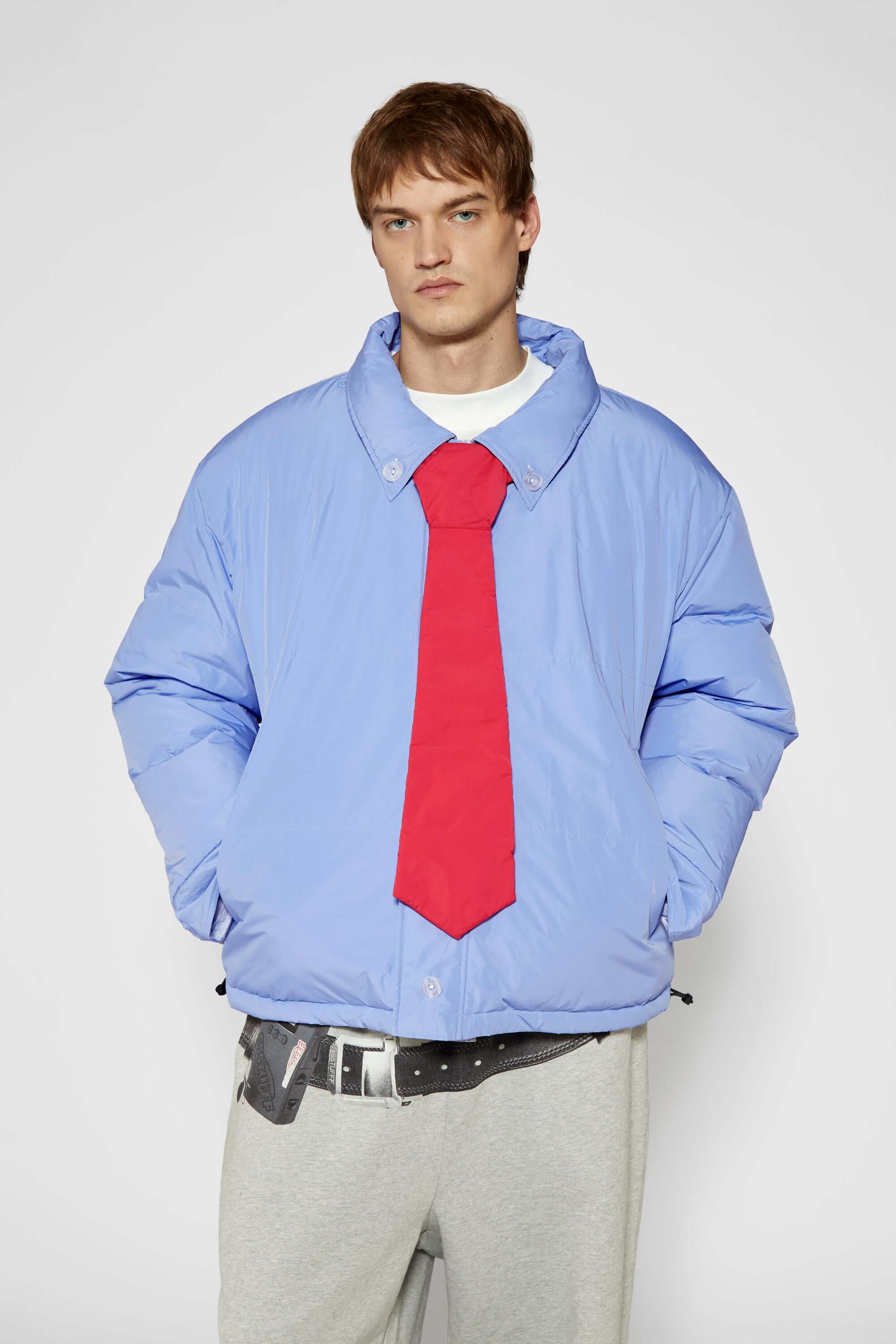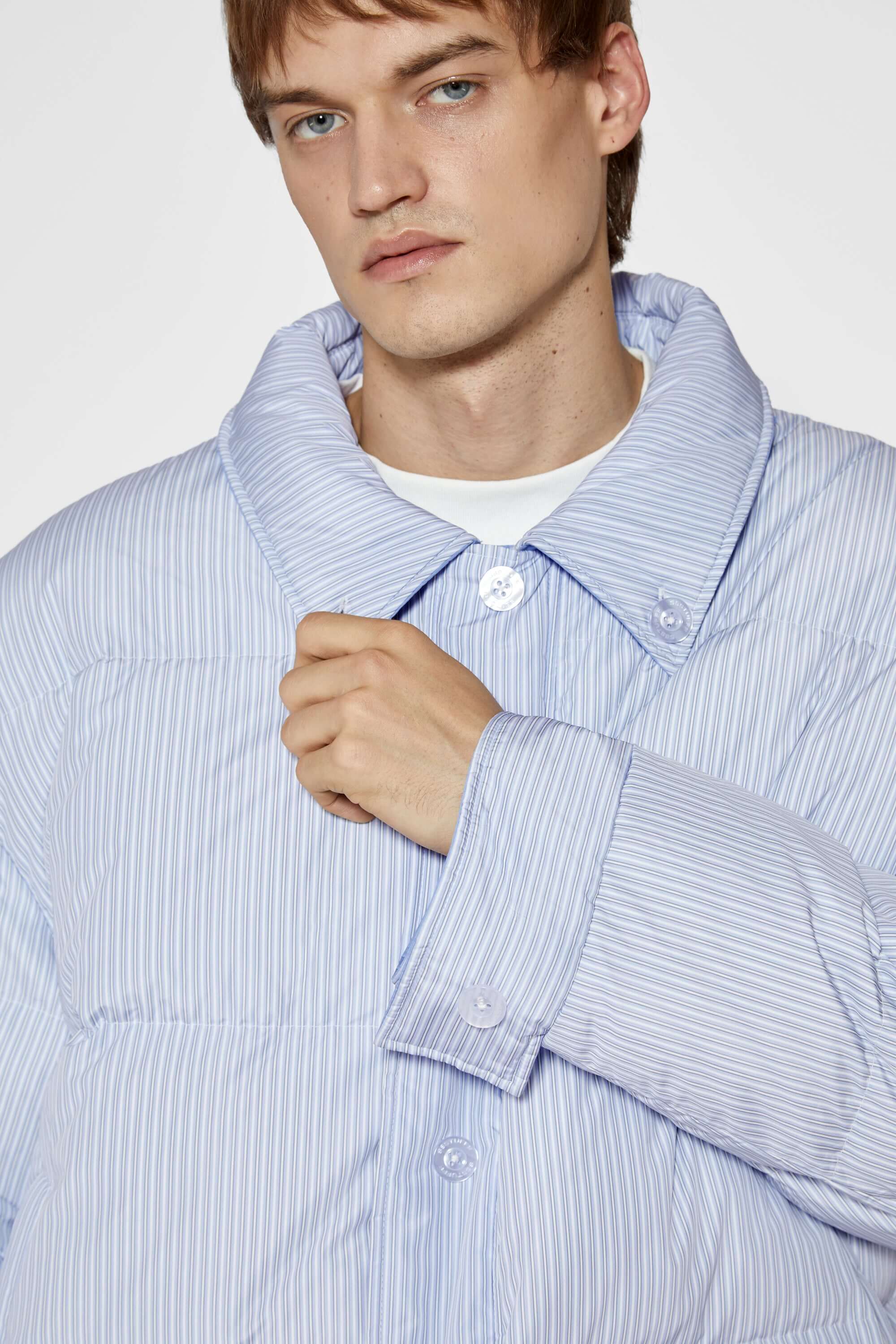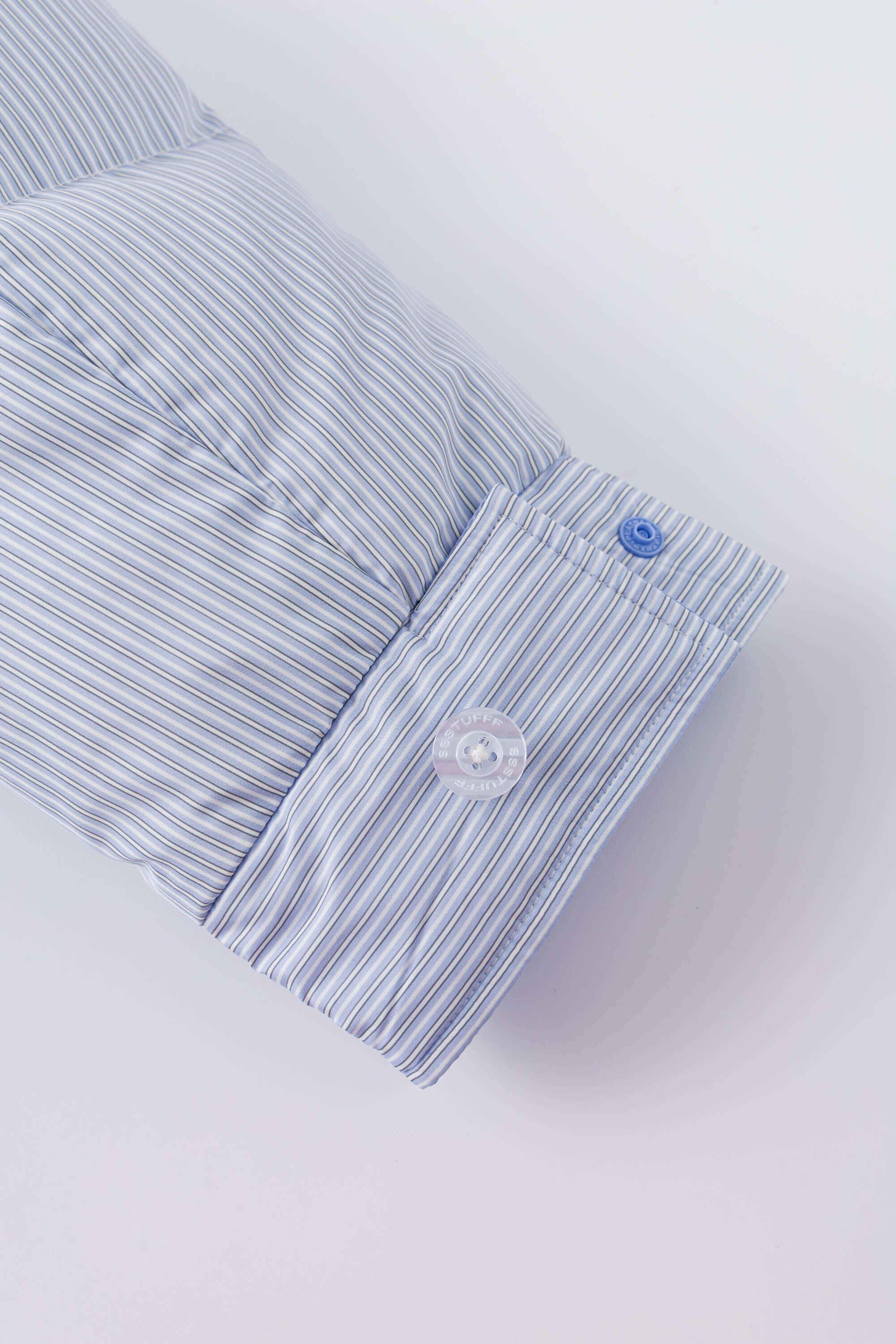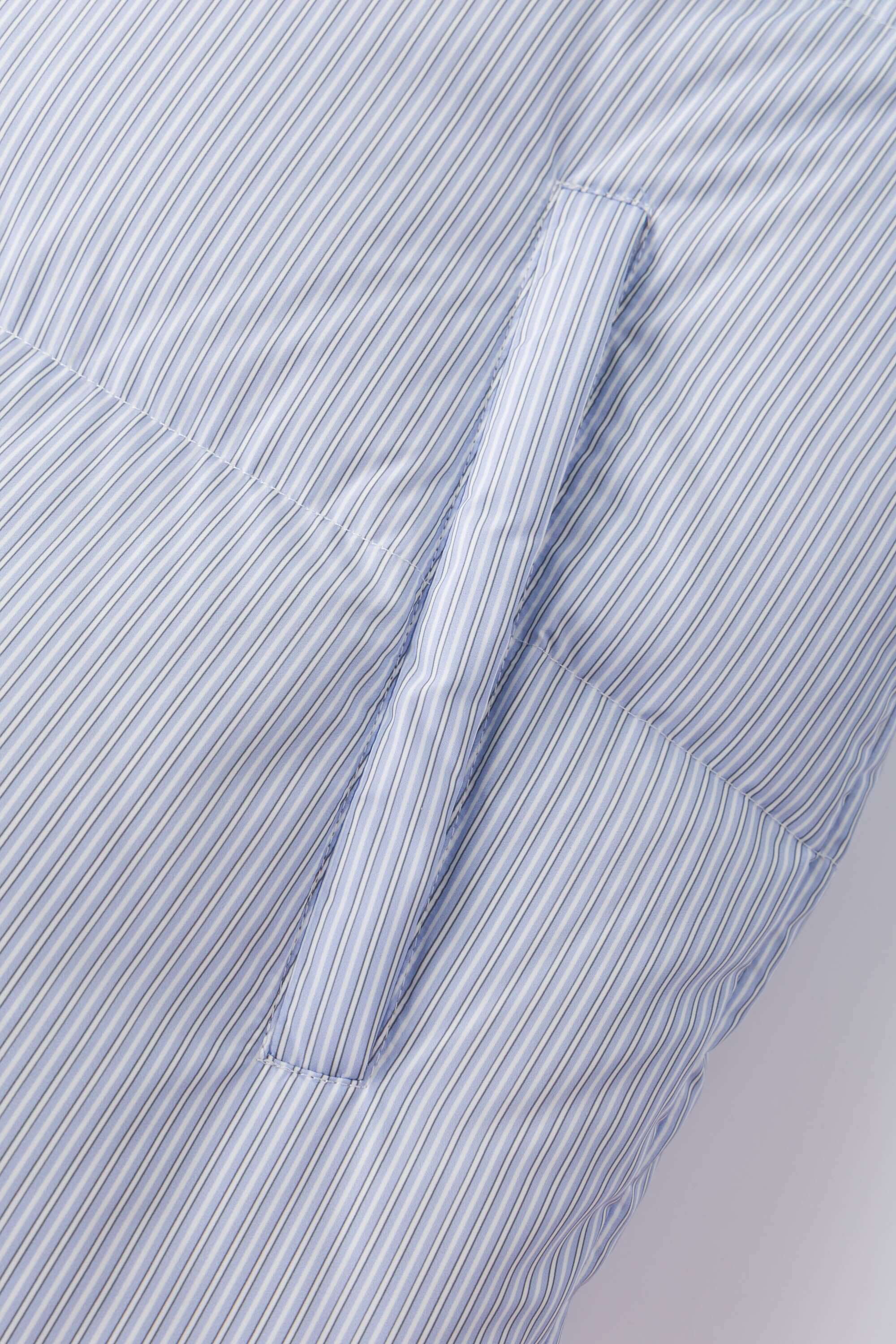-Two personalities, one jacket:Pinstriped shirt side for your manic Mondays, and pastel blue side for your smooth, fancy Fridays.
