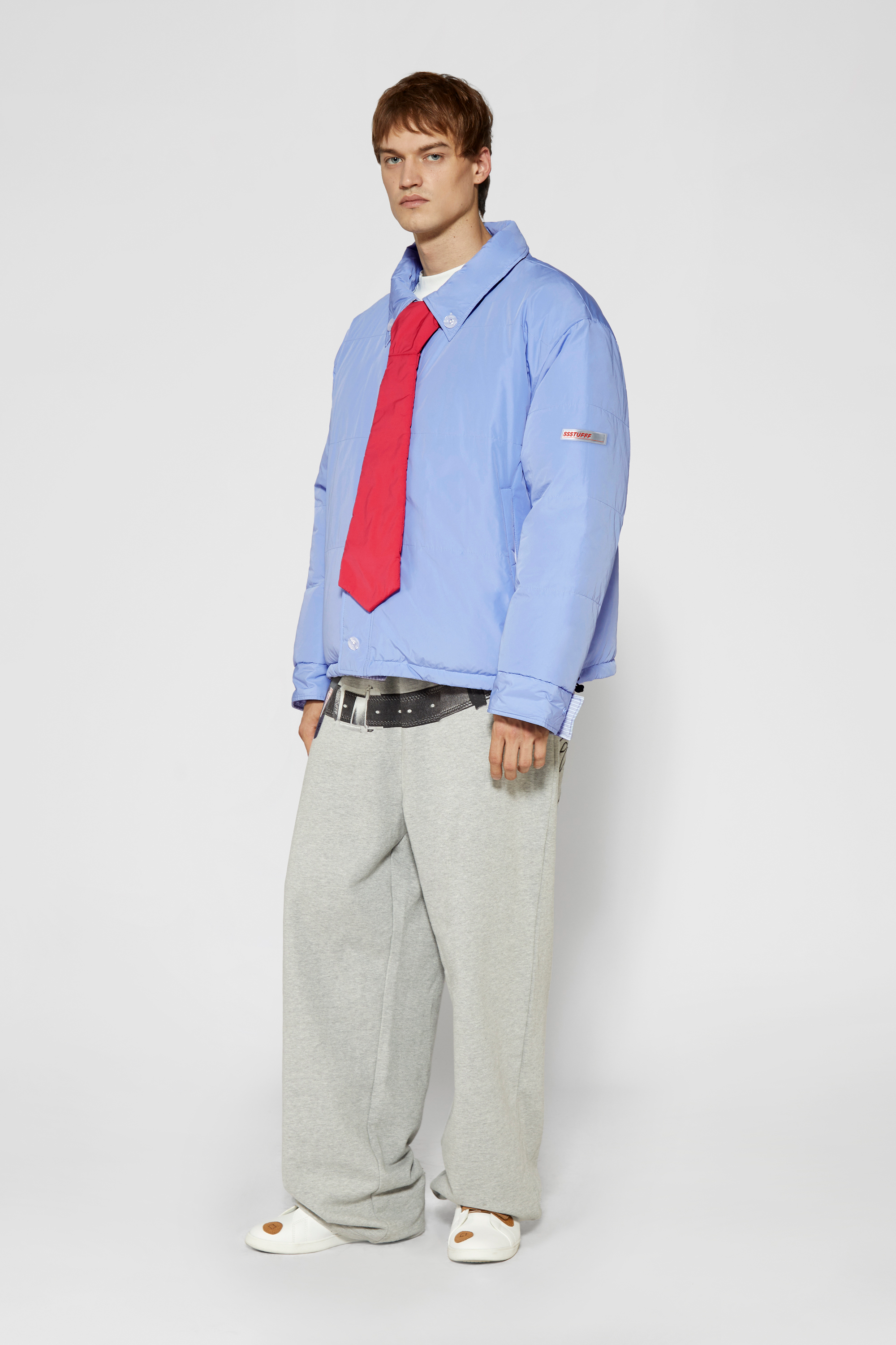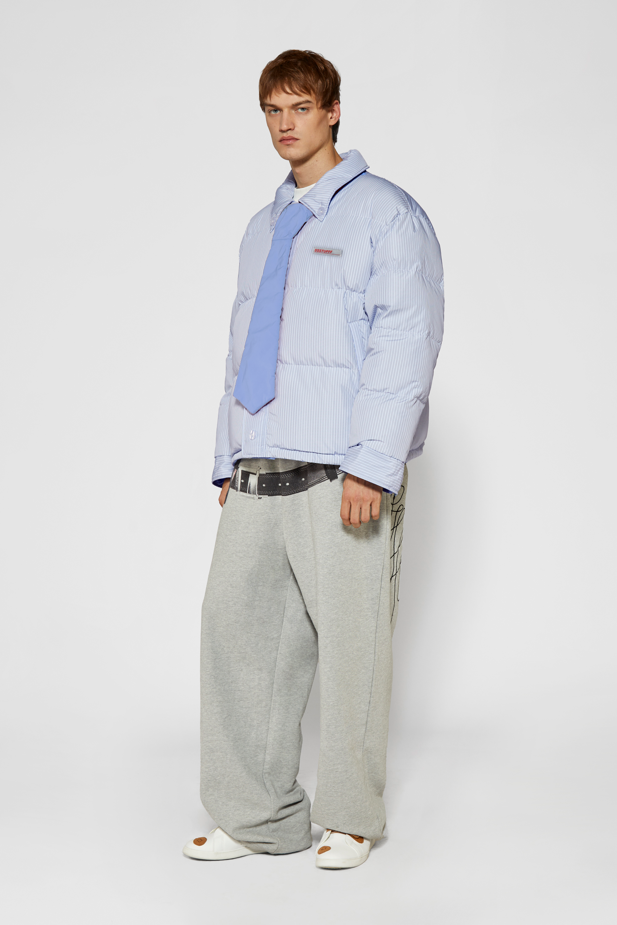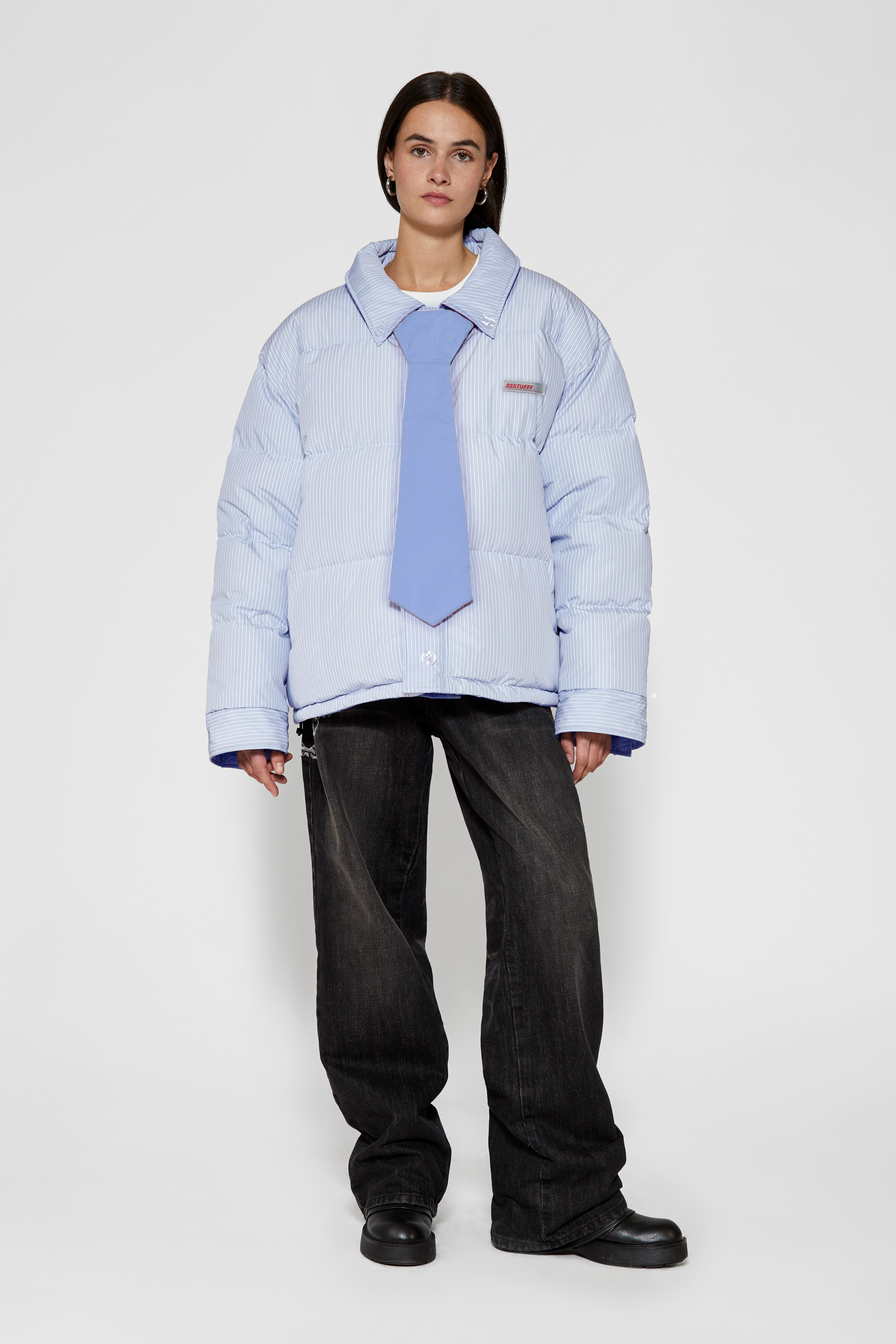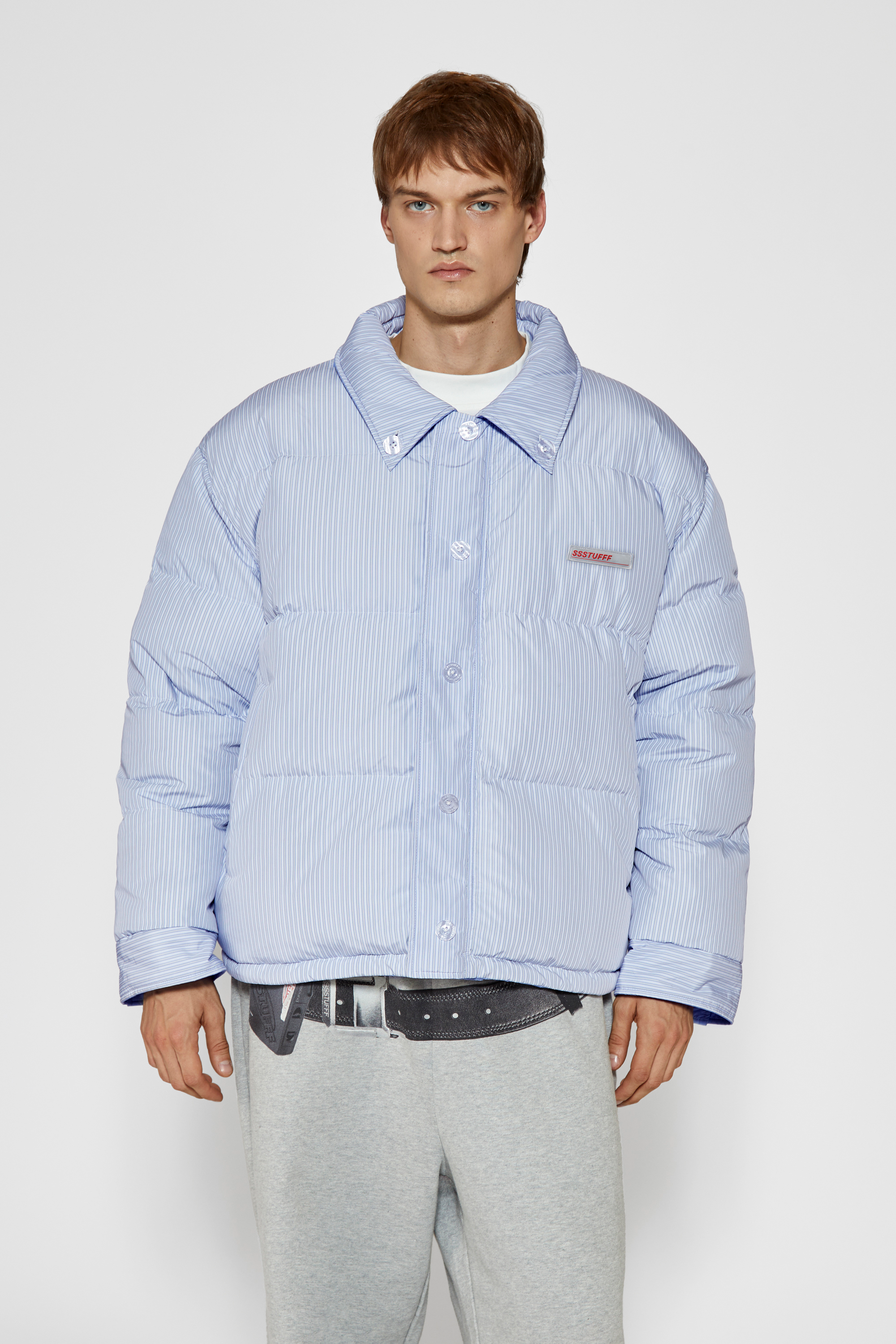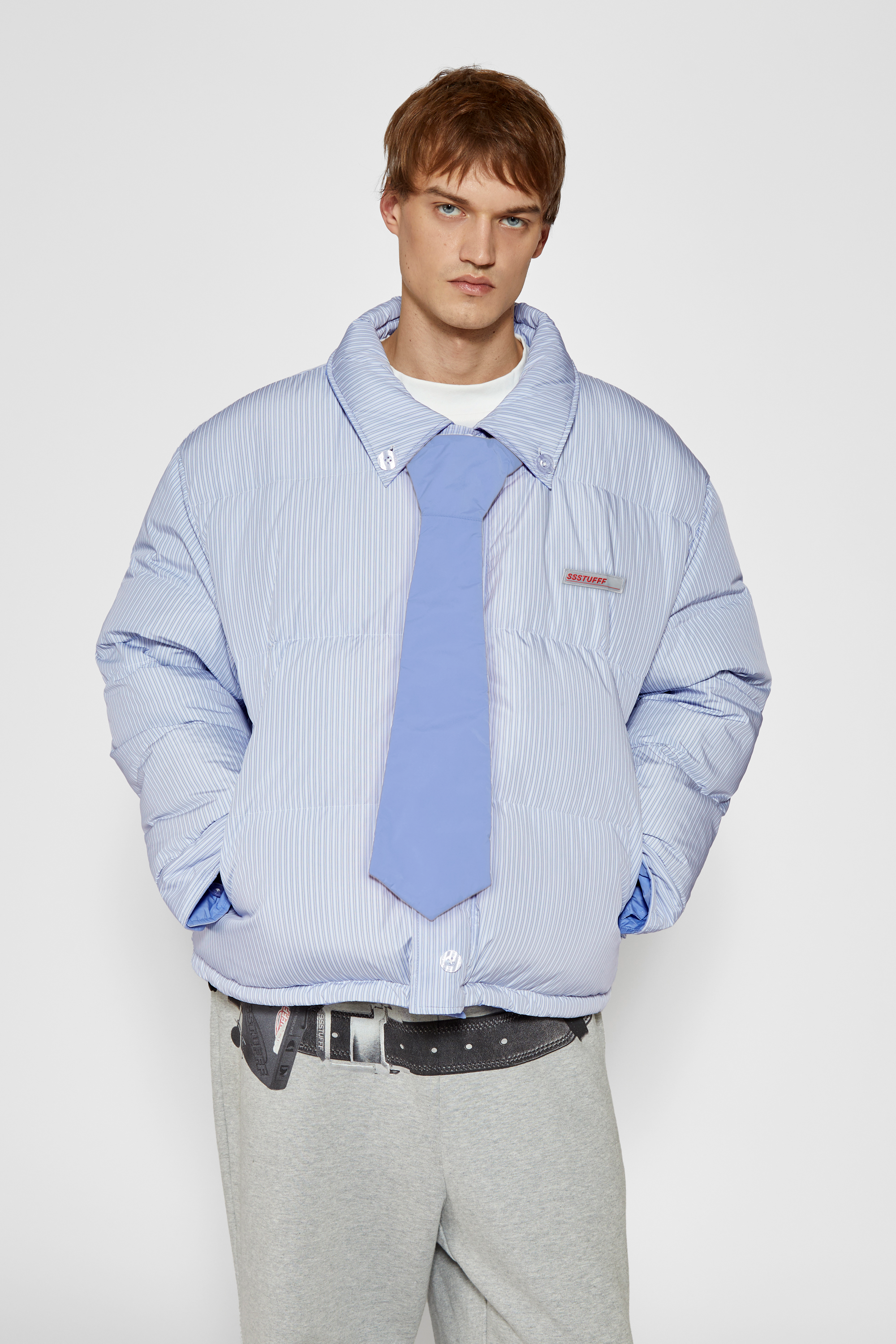-Two personalities, one jacket:Pinstriped shirt side for your manic Mondays, and pastel blue side for your smooth, fancy Fridays.