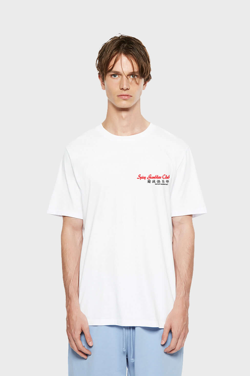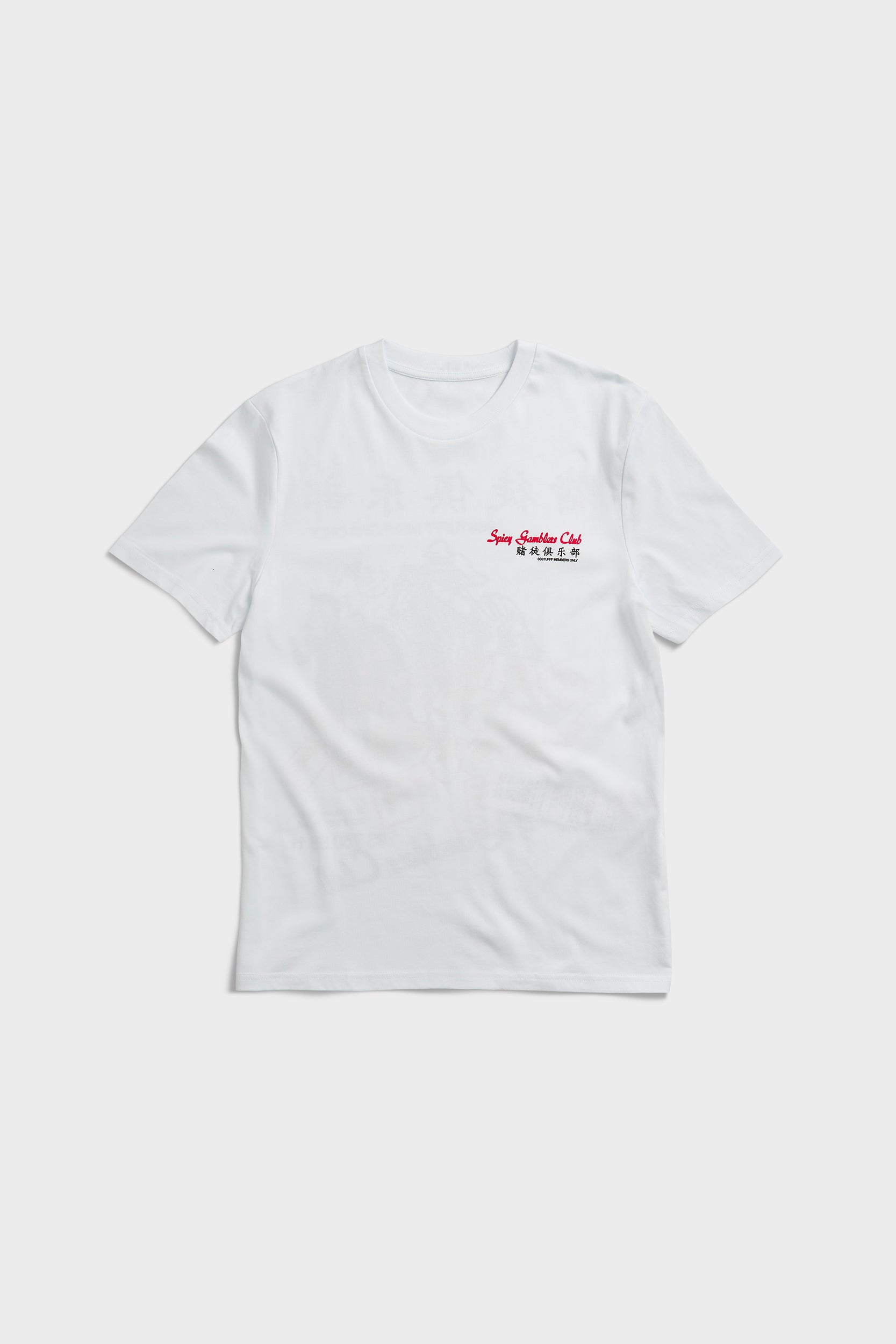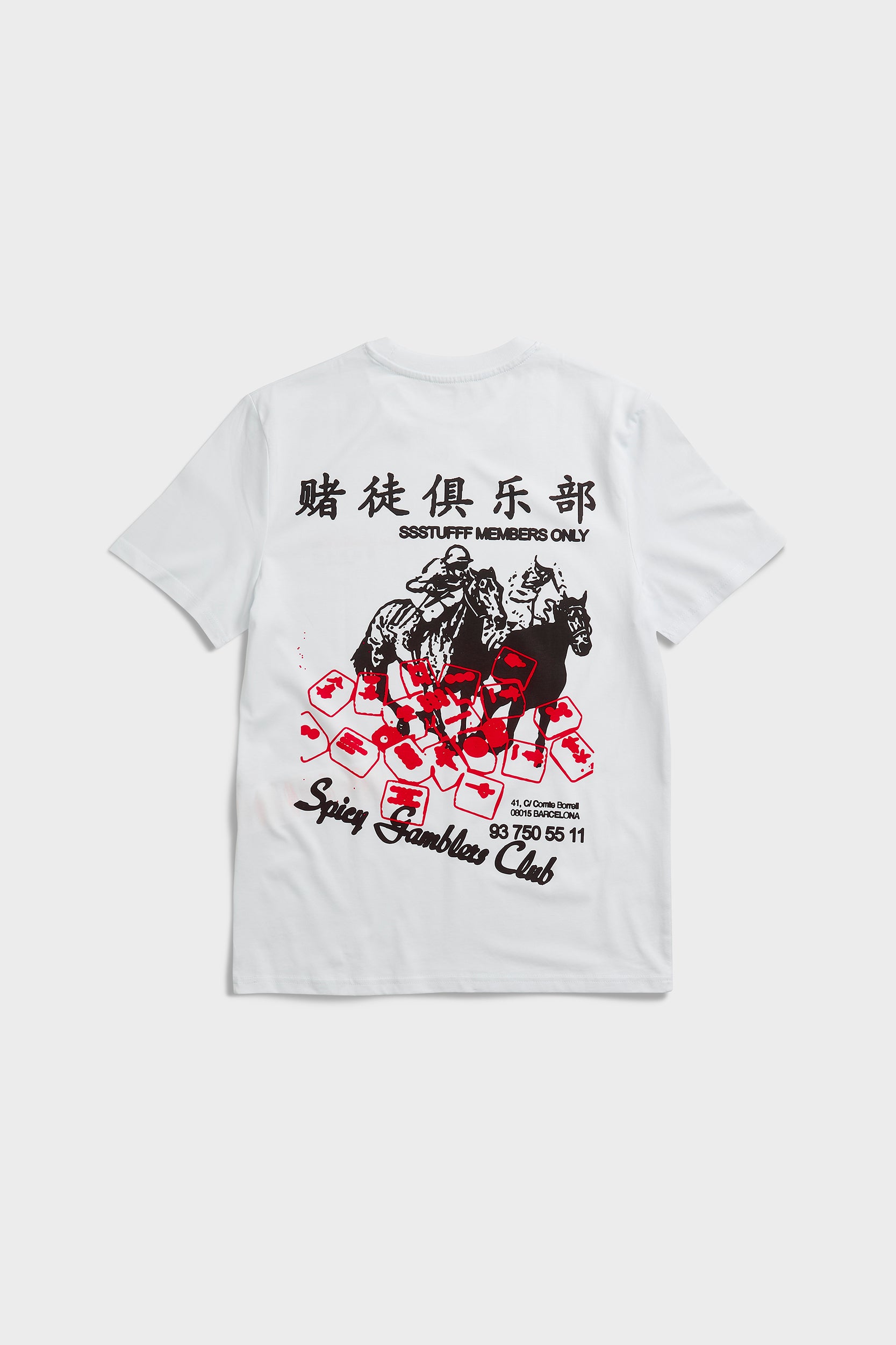 -Screen printed Spicy Gamblers Club left chest print with the gambling chips and horse race on the back