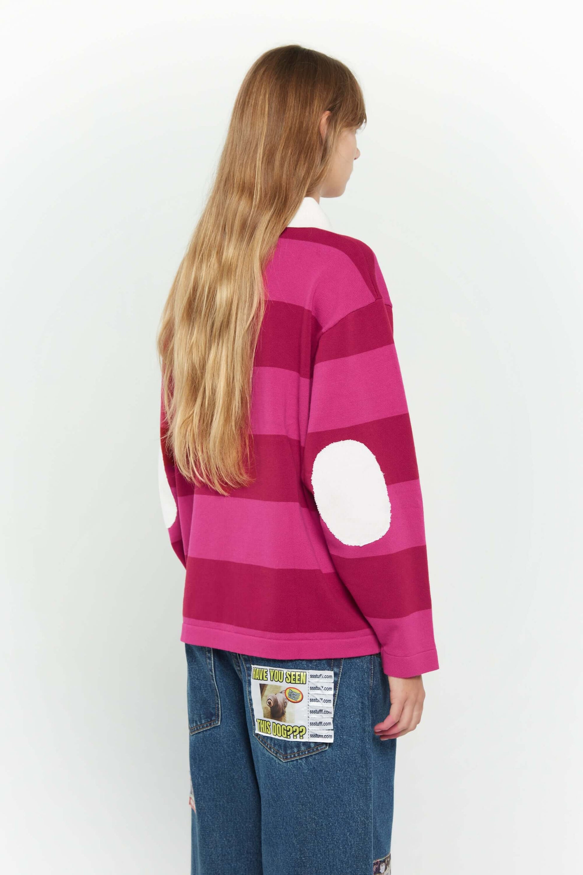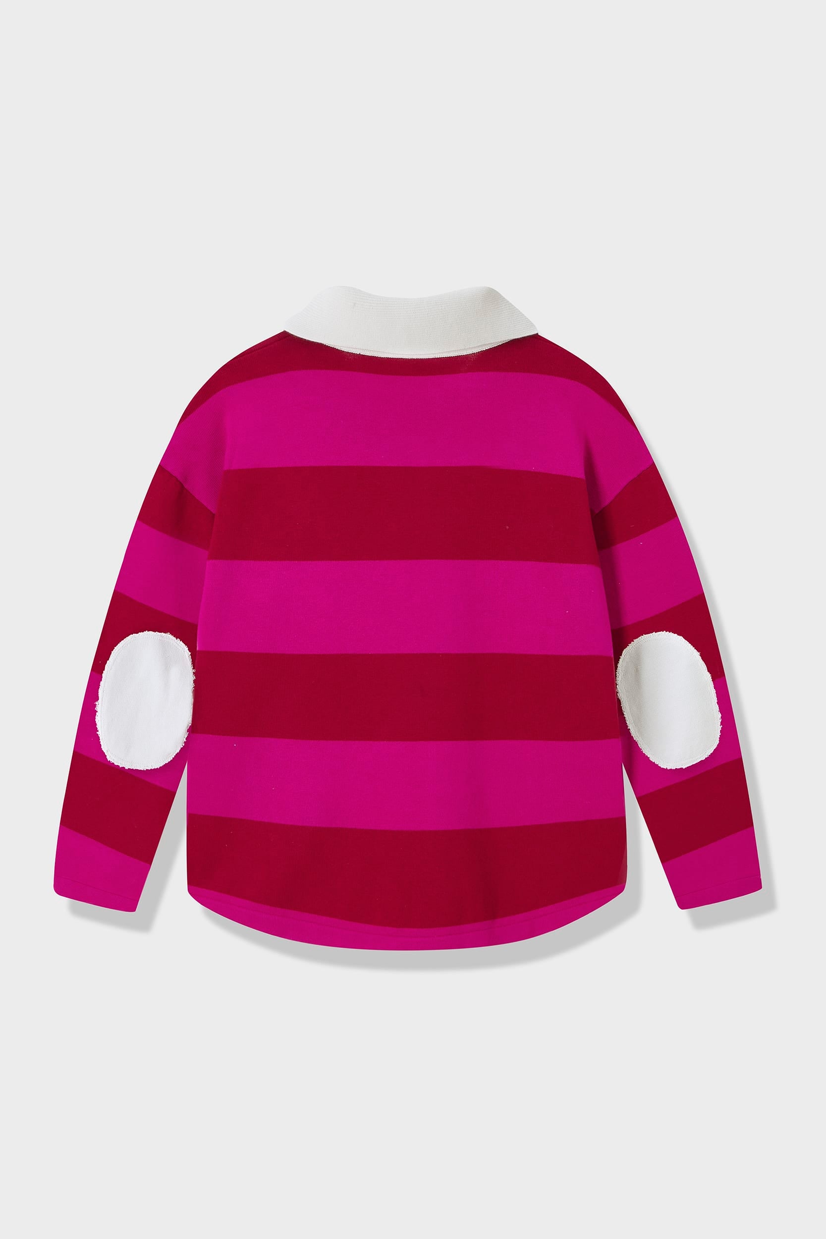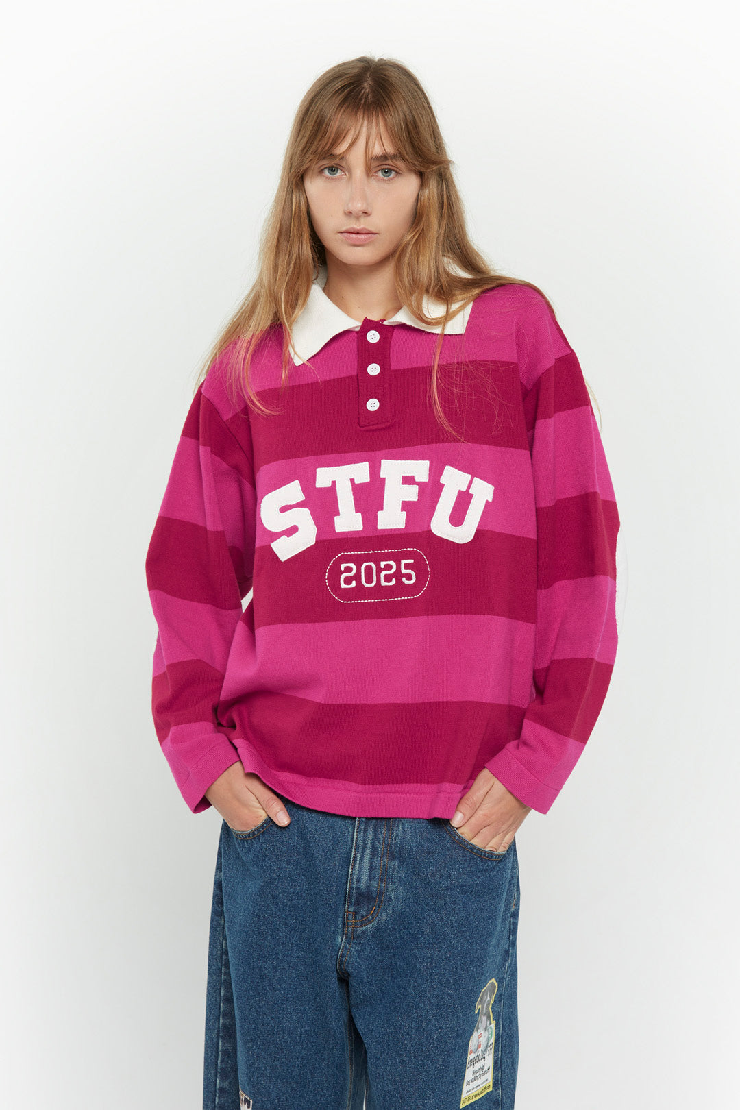 -Striped Rugby polo with contrast collar, patchwork “STFU” 🤐 and embroidered 2025.