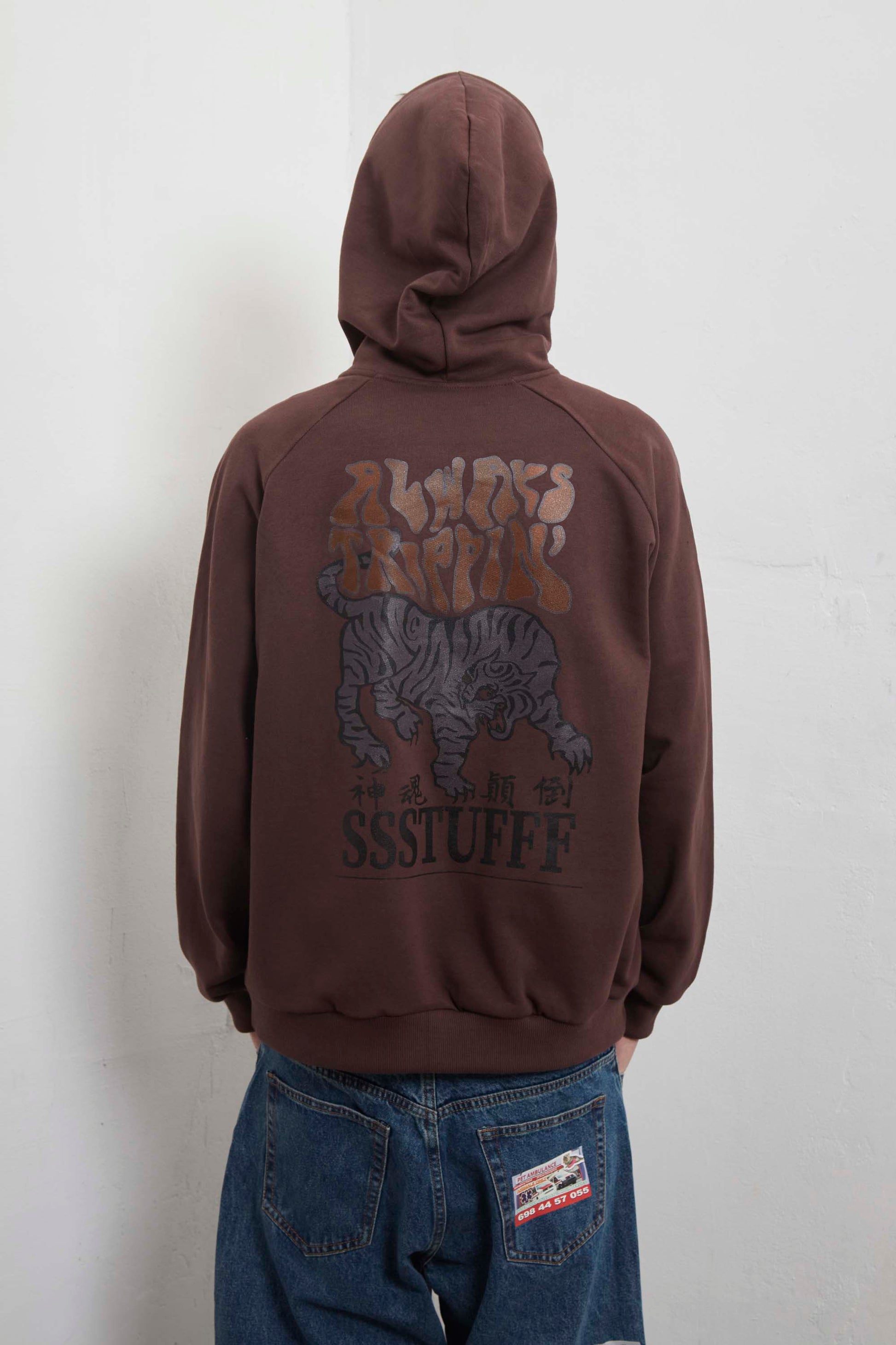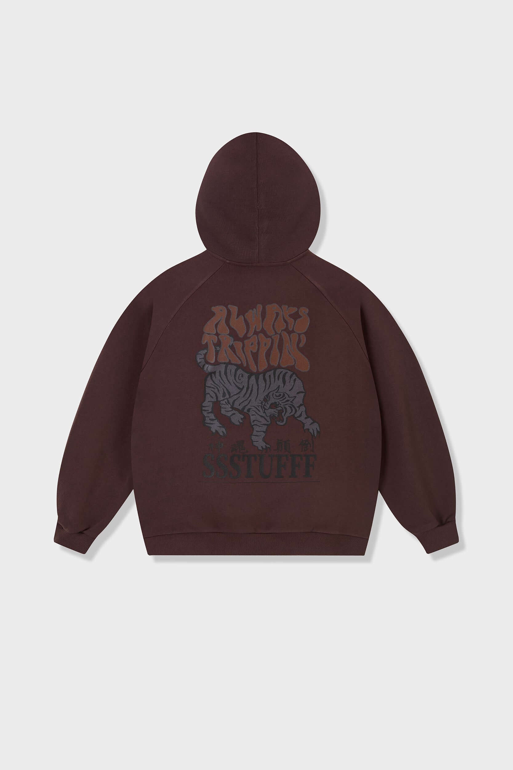 -The tiger print on the back and chest and the outline of the ¨Always Trippin´¨ print on the back will show Dark Yellow under the natural light.
